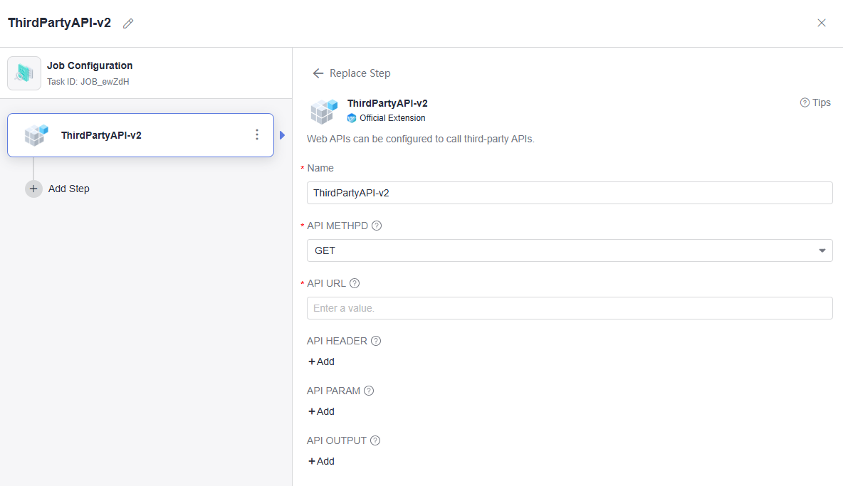 - Add the ThirdPartyAPI-v2 extension when you orchestrate a pipeline.