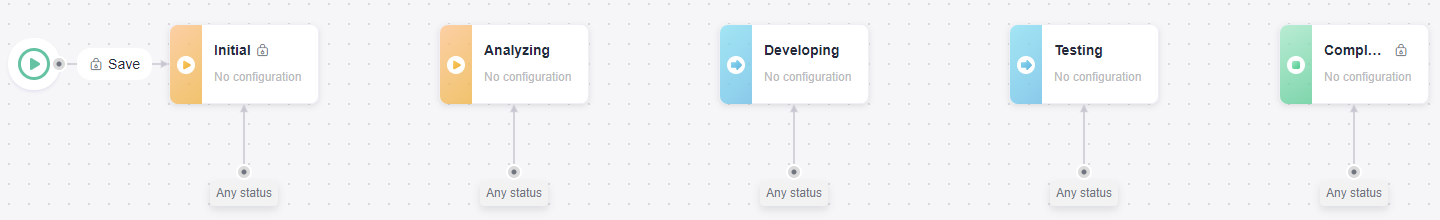 After the R&D requirement in the Initial state is handled, the state changes to Analyzing.