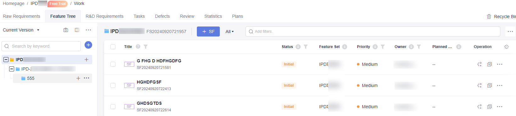 In the system feature list, you can copy the title, ID, current owner, status, and link of a system feature to the clipboard. SFs: Click Copy Link under IRs/SRs/ARs: Click |