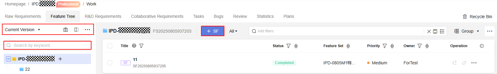 1. On the project homepage, choose Feature Tree.