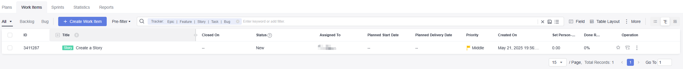 Work item fields can be customized. For details, see Configuring Work Item Fields and Templates. Table 1 describes default basic fields.
