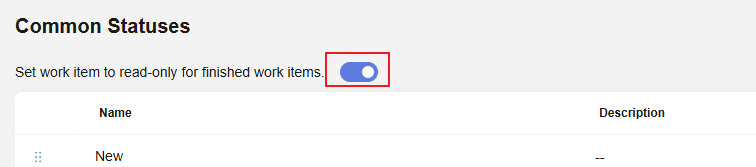 - In the navigation pane, choose Common Statuses. Click Add Status and add work item statuses (for example, CommonStatus 1) by referring to Table 1.