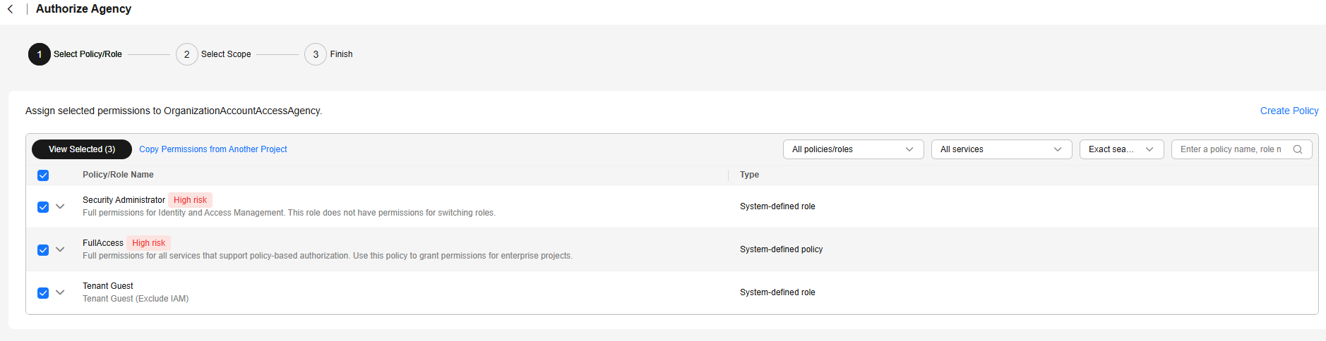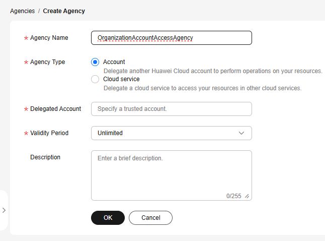 Once the OrganizationAccountAccessAgency agency is created, it cannot be deleted; otherwise, RGC services will become unavailable.