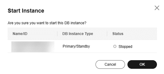 in the upper left corner of the page and choose Databases > TaurusDB. - On the Instances page, locate the primary instance that you want to start and choose in the Operation column.