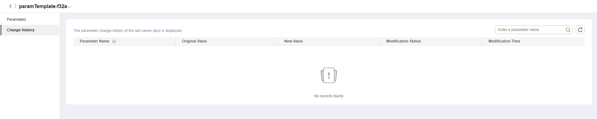 - In the navigation pane, choose Parameters. On the displayed page, click Change History.