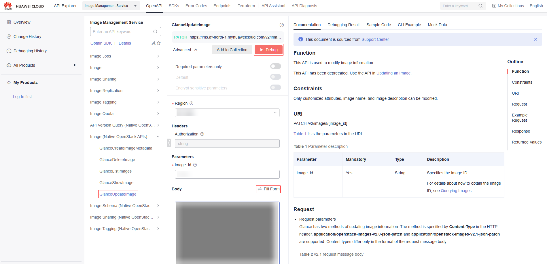 1. Obtain the image_id in Creating an Image. In the navigation pane of the ECS console, choose Image Management Service.