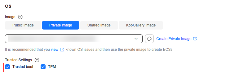 • When provisioning an ECS, select Trusted Boot and TPM under Trusted Settings.