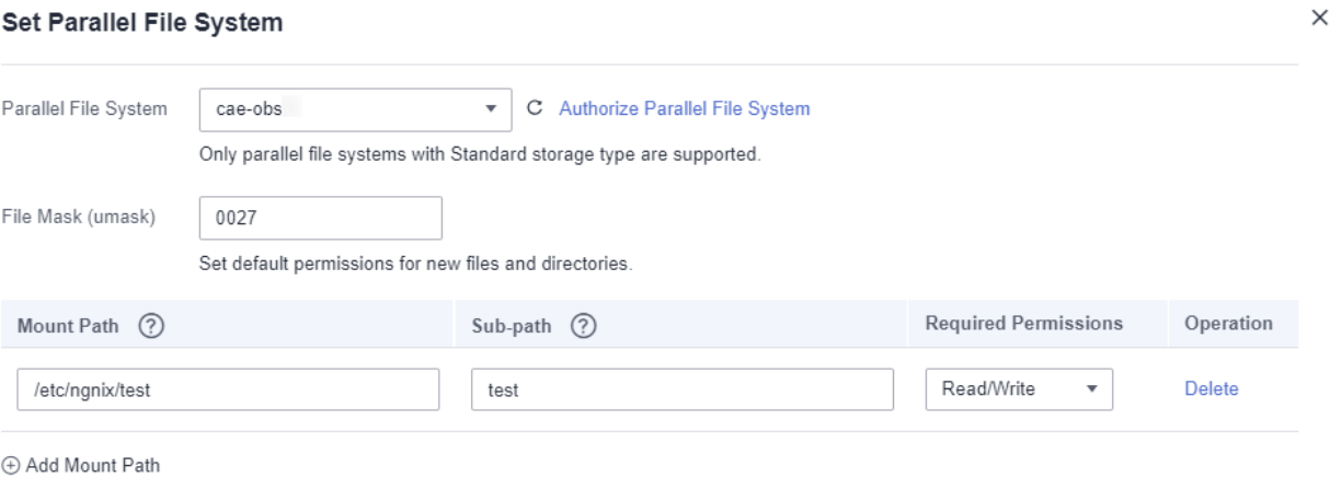 When configuring the parallel file system of cloud storage, if the corresponding subpath is not created in the selected parallel file system, the instance will be abnormal.