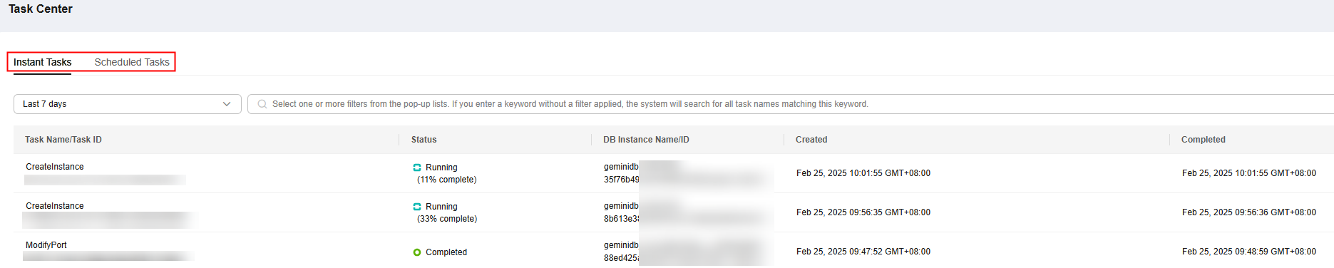2. On the Task Center page, click the Instant Tasks or Scheduled Tasks tab to view a task.