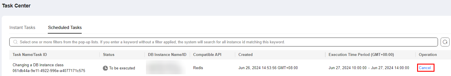 2. On the Task Center page, locate a scheduled task, and click Cancel in the Operation column.