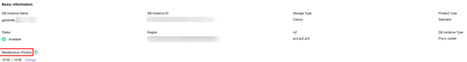 3. On the Basic Information page, locate Maintenance Window and click Change.