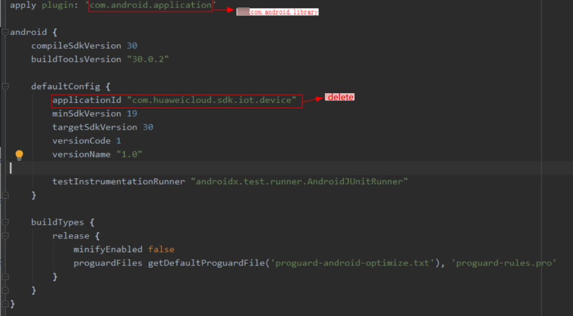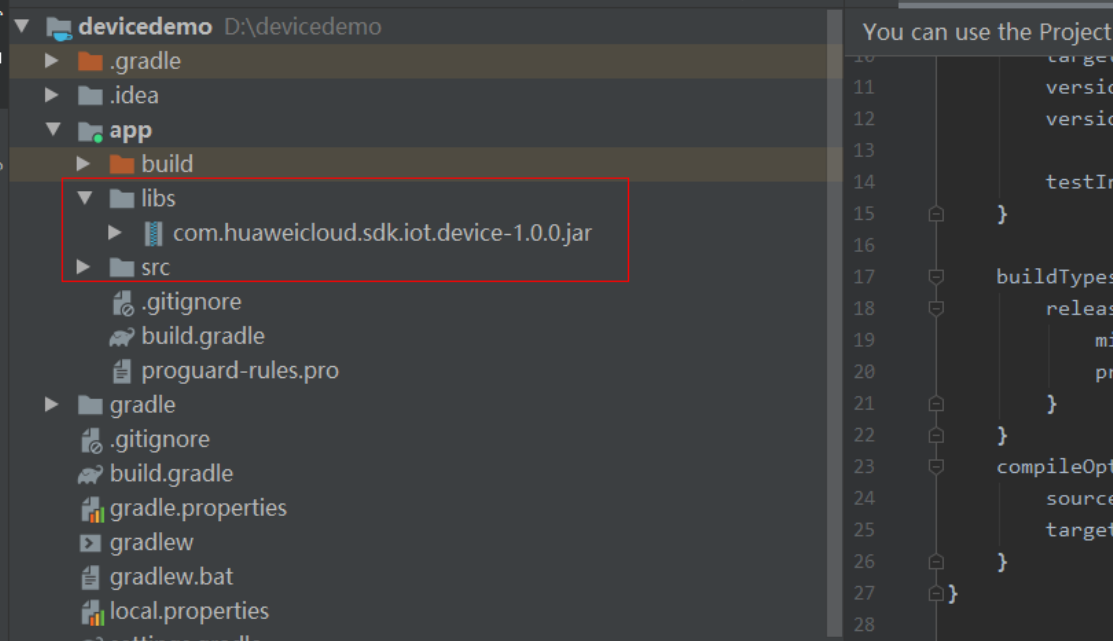 - Use Android Studio to create an Android project and set the package name to com.huaweicloud.sdk.iot.device.