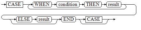 - If every WHEN condition is false, the result of the expression is the result of the ELSE clause. If the ELSE clause is omitted and has no match condition, the result is NULL.