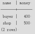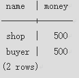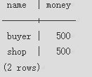 CREATE TABLE customer_info ( NAME VARCHAR(32) PRIMARY KEY, MONEY INTEGER ); INSERT INTO customer_info (name, money) VALUES ('buyer', 500), ('shop', 500);