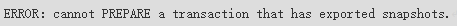 - Explicit two-phase commit of PREPARE TRANSACTION is not supported.