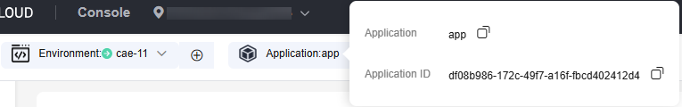 Mouse over Environment to view the environment name and ID. |