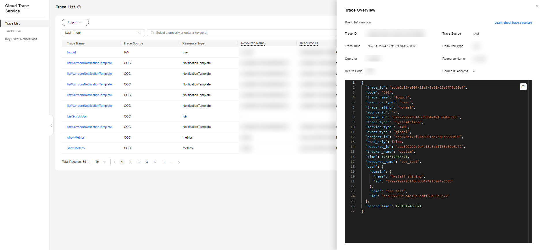 With Cloud Trace Service (CTS), you can record operations associated with COC for later query, audit, and backtracking. Table 1 lists the key operations.