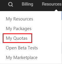 - En la esquina superior derecha de la página, seleccione Resources > My Quotas.