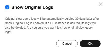 Original logs will be automatically deleted 30 days later. If the instance is deleted, its logs are also deleted.