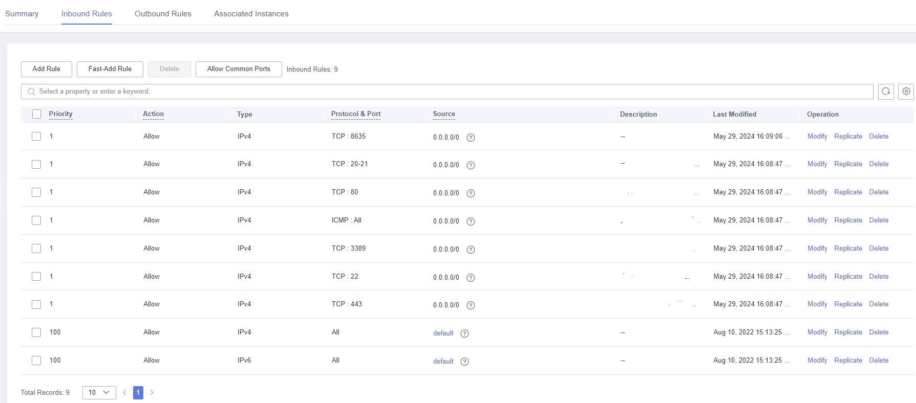 • Too many security group rules will increase the first packet latency, so a maximum of 50 rules for each security group is recommended.