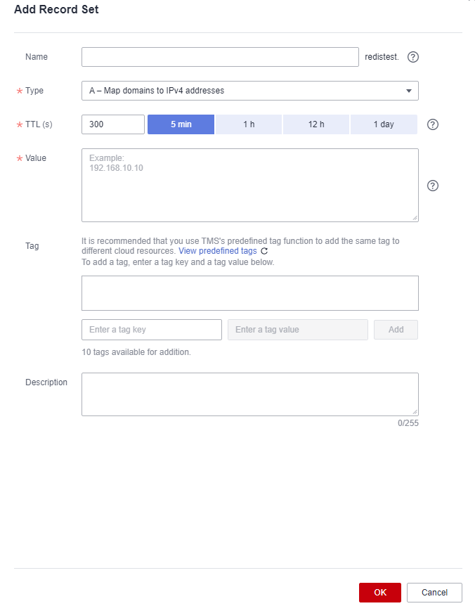 For details about how to configure parameters, see Adding Record Sets for a Private Zone.