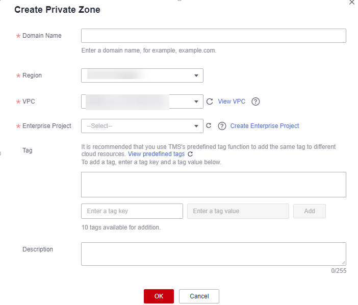 - If you manage domain names by enterprise project, select an existing enterprise project.