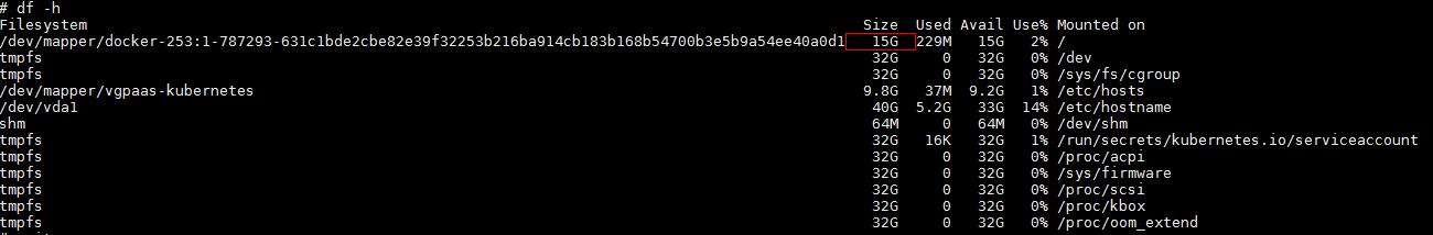 - Quando o rootfs usa o Device Mapper, o nó oferece suporte ao tamanho da base do pod personalizado. O espaço de armazenamento padrão de um único contêiner é de 10 GiB.