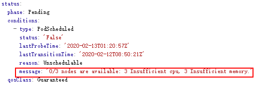 - Verifique a mensagem de erro. As informações a seguir indicam que os recursos são insuficientes.