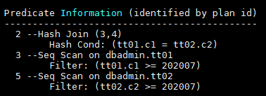 This part displays the filtering conditions of the corresponding execution operator node, that is, the information that does not change during the entire plan execution, mainly the join conditions and filter information.