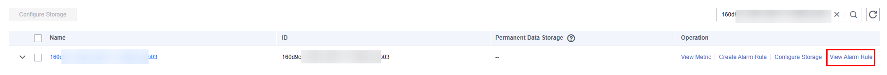 to expand cluster nodes. Click View Alarm Rule in the Operation of the target node. In the displayed dialog box, you can view all alarm rules of the cluster node.