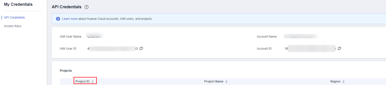 You can obtain the project ID by calling the API for Querying Project Information Based on Specified Criteria.