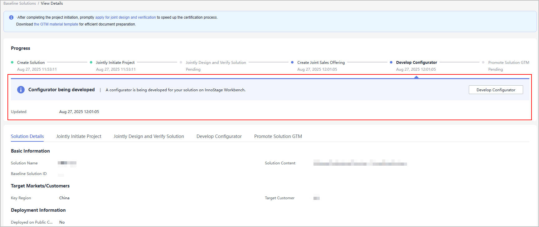 - You can check the configurator development progress in Partner Center when developing the configurator in the Solution Configuration Center.