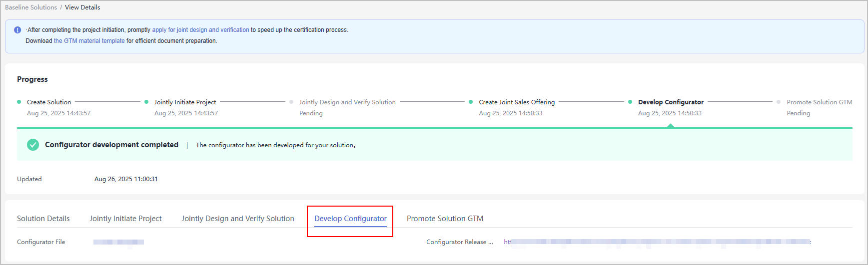 - After the configurator development is done, you can download the configurator file and view the configurator release link on the solution details page.