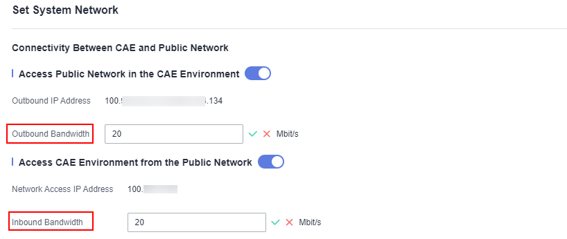 You can disable Access Public Network in the CAE Environment and Access CAE Environment from the Public Network to improve the system network security. They are enabled by default.