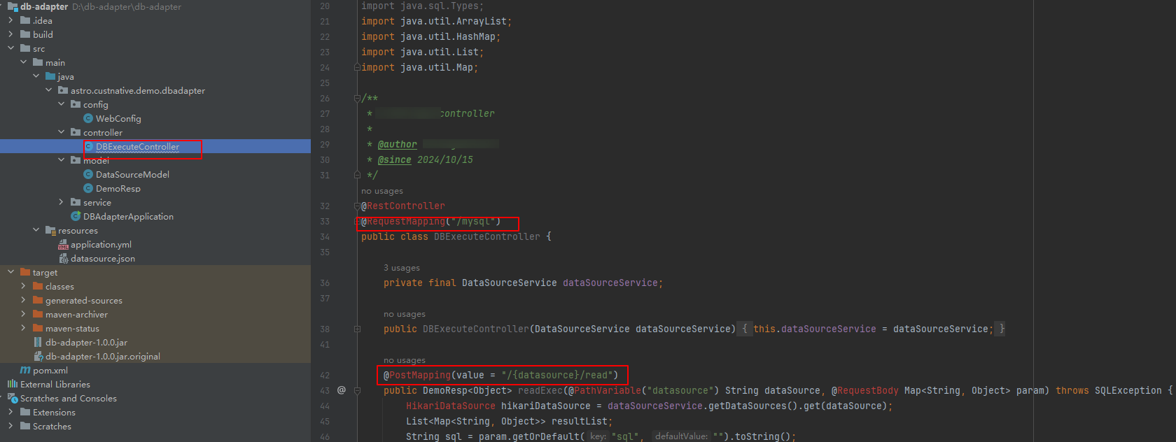 Figure 2 datasource.jsonFigure 3 DBExecuteController.java