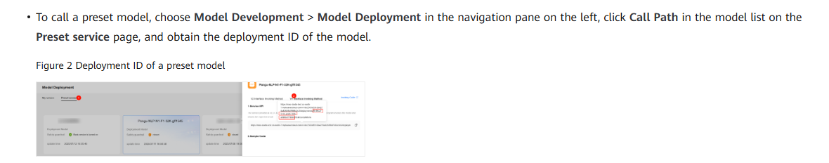Apply for the OBT or subscribe to PanguLM to obtain the deployment ID for API calling. For details, see Applying for the OBT or Subscribing to the PanguLM Service.