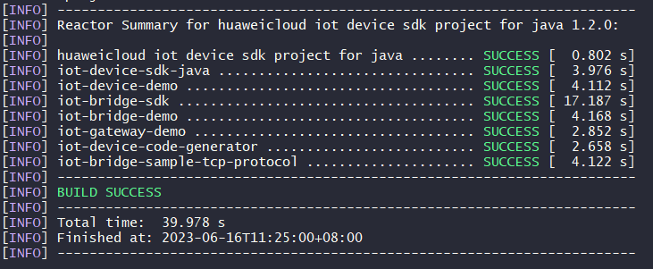 - Download the huaweicloud-iot-device-sdk-java project, decompress it, go to the huaweicloud-iot-device-sdk-java directory, and run the mvn install command.
