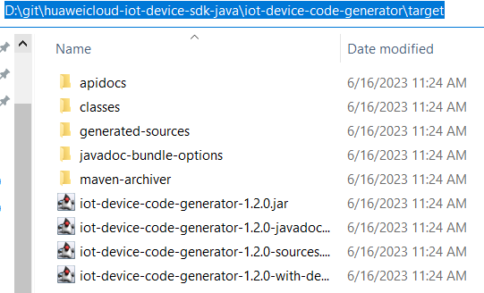 - Check whether an executable JAR package is generated in the target folder of iot-device-code-generator.