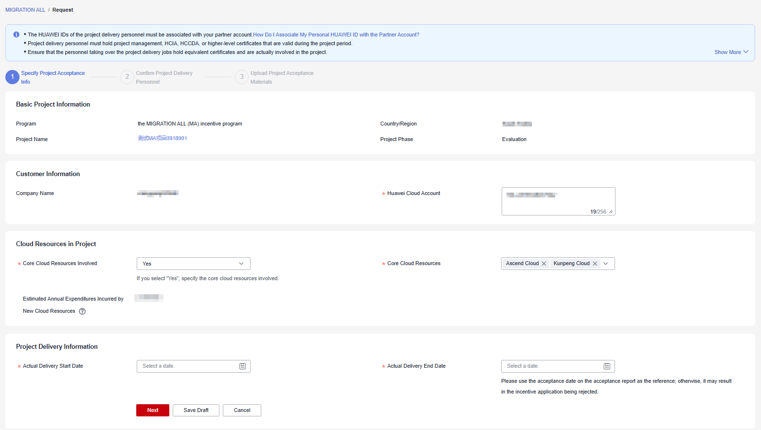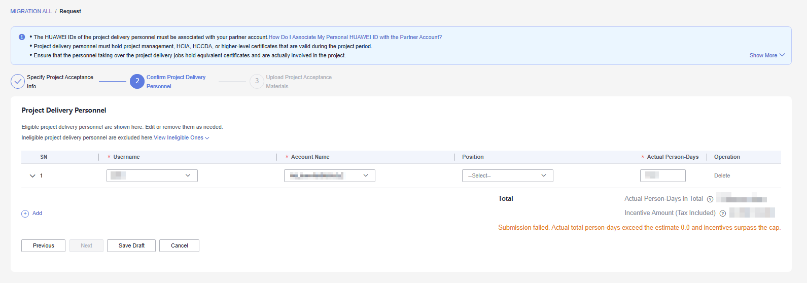 - The HUAWEI IDs of the project delivery personnel must be associated with your partner account.