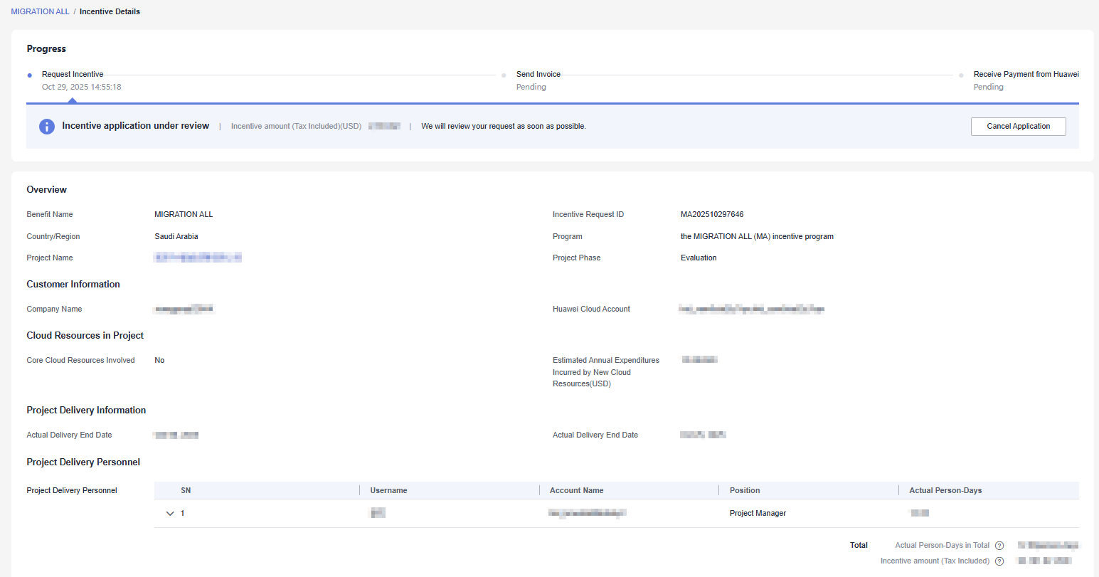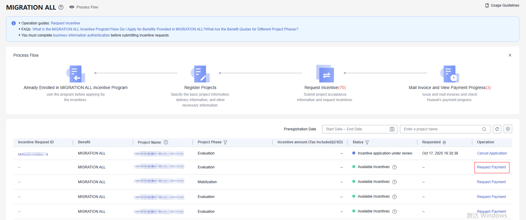 After you have joined the MIGRATION ALL incentive program, you can register projects at different phases. Once your project registration applications are approved, you can request corresponding incentives.