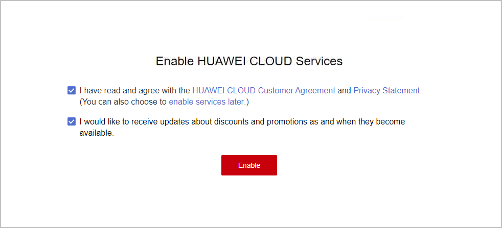 - Enable Huawei Cloud services.
