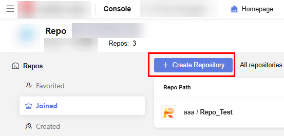 - Go to the CodeArts Repo homepage, click New Repository, and select an existing project from the Project drop-down list box or create a project.