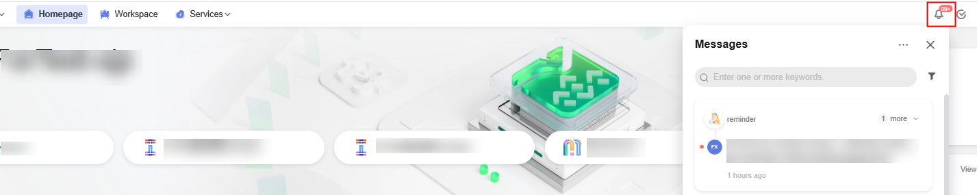 - Direct Message: When a member logs in to the CodeArts Req homepage, they will see the number of internal messages displayed next to