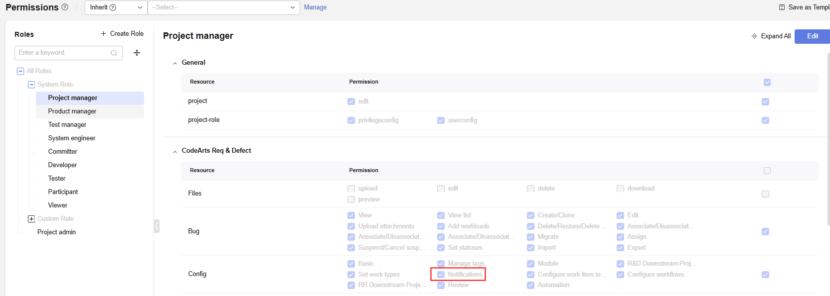 - To configure internal message, email, and WeCom notifications, you must have the Config > Notifications permissions for IPD-standalone software projects. For details, see How Do I Check and Obtain Required Project Permissions?