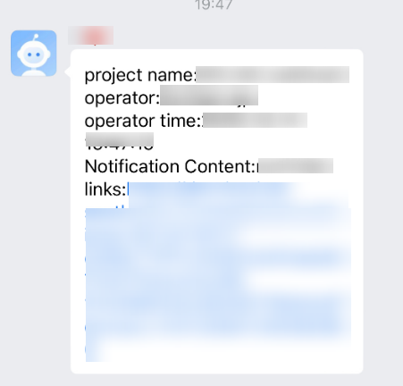 After the configuration is complete, WeCom will send notifications to the WeCom chat group when specified events occur.