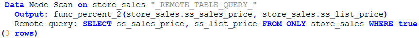 可见,func_percent_2并没有被下推,而是将ss_sales_price和ss_list_price收到CN上,再进行计算,消耗大量CN的资源,而且计算缓慢。