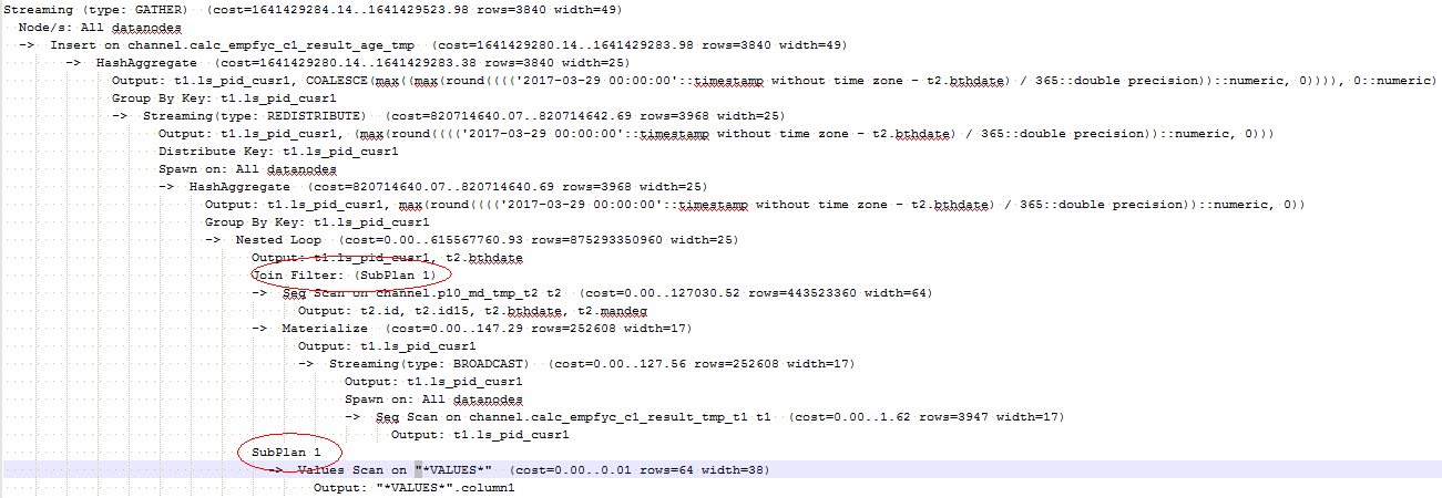 select ls_pid_cusr1,COALESCE(max(round(ym/365)),0) from ( ( SELECT ls_pid_cusr1,(current_date-bthdate) as ym FROM calc_empfyc_c1_result_tmp_t1 t1,p10_md_tmp_t2 t2 WHERE t1.ls_pid_cusr1 = t2.id and t1.ls_pid_cusr1 != t2.id15 ) union all ( SELECT ls_pid_cusr1,(current_date-bthdate) as ym FROM calc_empfyc_c1_result_tmp_t1 t1,p10_md_tmp_t2 t2 WHERE t1.ls_pid_cusr1 = id15 ) ) GROUP BY ls_pid_cusr1; |