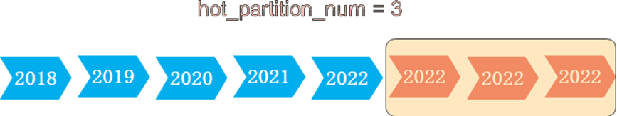 如下图中,设置HPN为3,即在冷热切换时,保留最新的3个有数据的分区为热分区数据,其余分区均切为冷分区。