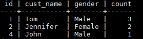 SELECT id, cust_name, gender, ROW_NUMBER() OVER (PARTITION BY cust_name,gender ORDER BY id) num FROM t_customer;