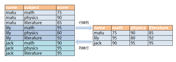 老师会按照学科录入成绩,每科老师都会单独录入每个学生对应学科的成绩,而每位学生只关注自己各科的成绩。如果把老师录入数据作为原始表,那么学生查看自己的成绩就要用到行转列;如果让学生自己填写各科的成绩并汇总,然后老师去查自己学科所有学生的成绩,那就是列转行。